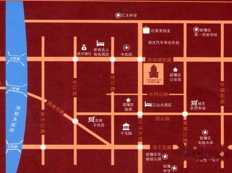 中 小 学: 宿豫中学、汇文中学、张家港小学 综合商场:宿豫商贸城 幼 儿 园:张家港幼儿园、宿豫区机关幼儿园 银 行:中行、工行、建行 邮 局:中国邮政 医 院:宿迁市中医院
