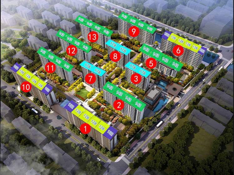 项目户型方正大气,南北通透,均有3-4个开间朝南,保证了较大的采光面。每个户型都有近7m到10m的宽敞阳台,景观和生活功能都能满足。全部四房格局,满足家庭二胎或三代同堂居住,置业终极目标。现代中式风格,形式简约大气,色彩自然典雅。