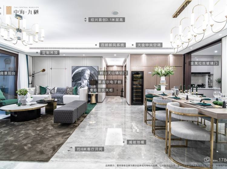 中海九樾项目产品面积段约为128-178平(128、143、178平米三种),较大面宽为17.1米,单层层高3.1米(为目前绍兴洋房中层高较主的项目)。