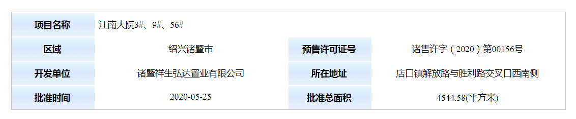 - 诸售许字(2020)第00133号 详情发证时间 2020-05-15绑定楼栋江南大院证件照片