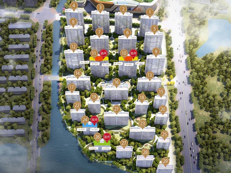 龙湖金帝天汇外揽一线湖景,内拥龙湖五维园林