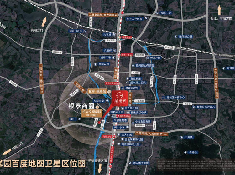 项目所在城南板块,交通便捷,居住氛围醇熟,近享大禹智慧快速、解放大道、城南大道等城市主干道,1公里范围内涵盖两大地铁站:绍兴地铁1号线城南大道站和凤凰山站;悦享金帝·银泰城1.5公里生活圈,万千繁华步行可达;300米绍兴文理学院南山校区,3-18岁全龄段教育资源环伺,是绍兴高端置业的优质之选。