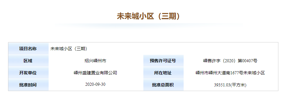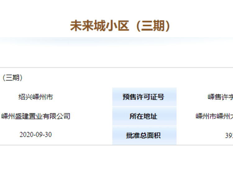 - 嵊售许字(2020)第00407号 详情发证时间 2020-09-30绑定楼栋未来城小区(三期)证件照片