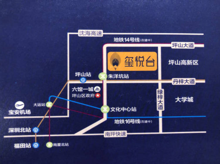 玺悦台位于坪山区坪山大道与丹梓大道交汇处东北角。总建面约22万㎡纯住宅项目,带社区商业约1万㎡。可售商品房约1061套,主力户型为建面约85-110㎡的精装3-4房。