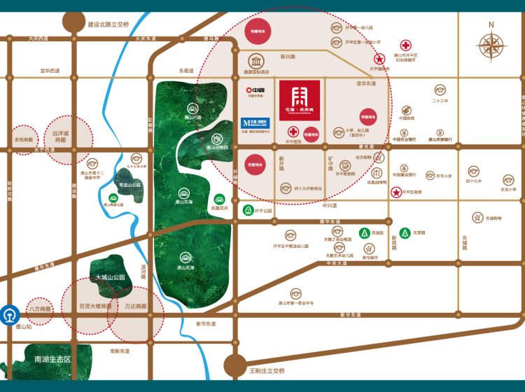 花海未来城依花海而建,北邻龙华道,直达唐山核心商圈,南临建华道直达唐山中心地带,约15分钟生活圈已然呈现,而西侧的新开路更是通达唐山新市区各个板块,南接南湖,北接高新,贯穿花海。花海未来城地处开平主城区临近花海的地块,畅享开平醇熟配套,唐百志方购物、华盛超市、IBD进出口超市、红星美凯龙、魔都影城、肯德基等商业配套,更有将于2022年10月对外开放的中骏世界城,也是开平排名前列超15万平米的超大型综合家庭式体验购物中心。