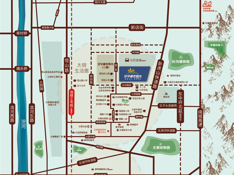 泛华盛世阳光焕新北城,厦门泛华集团投资建设七府坟城中村改造项目,项目东临卧虎山快速路,西至规划路,南临长沟南街,北至市级规划公交枢纽总站。一期总建面约16万平米,其中住宅总建面约13万平米,共规划建设6栋高层阳光美宅,打造新北城亲情人文住区。泛华盛世阳光项目周边生活服务设施齐备,各级政务机构、各大银行、商超等林立,周边有星宇购物等商场,纵享繁华。驾车至太钢总医院(三甲医院)较近,周围各类社区卫生服务机构齐备,悉心呵护家人健康,为幸福保驾护航。 市级公交总站配套,10000㎡现代简约中庭园林,南北通透三阳台设计,6米精装入户大堂,6所小学6所中学。 泛华盛世阳光项目规划两期开发,一期总建筑面积约16万平方米,三栋32层,三栋30层。 注:公共部分精装修