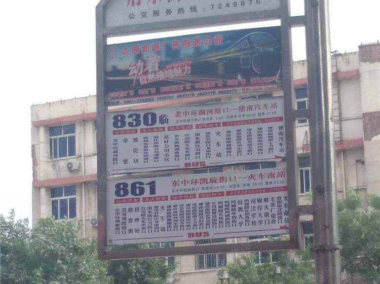 建设北路白龙庙街口: 869路、861路、602路、410路、清徐9路、73路、830路、9路