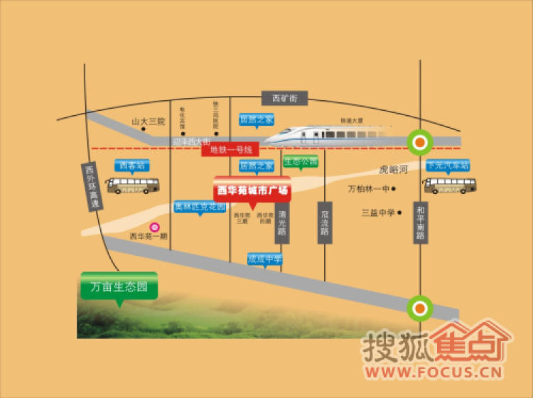西华苑晋街坊是太原市迎泽西大街上新兴的城市商业中心,西接西客站,北接居然之家(河西店),南临西延南内环街,由60.88万平米住宅和6万平米商业组成。