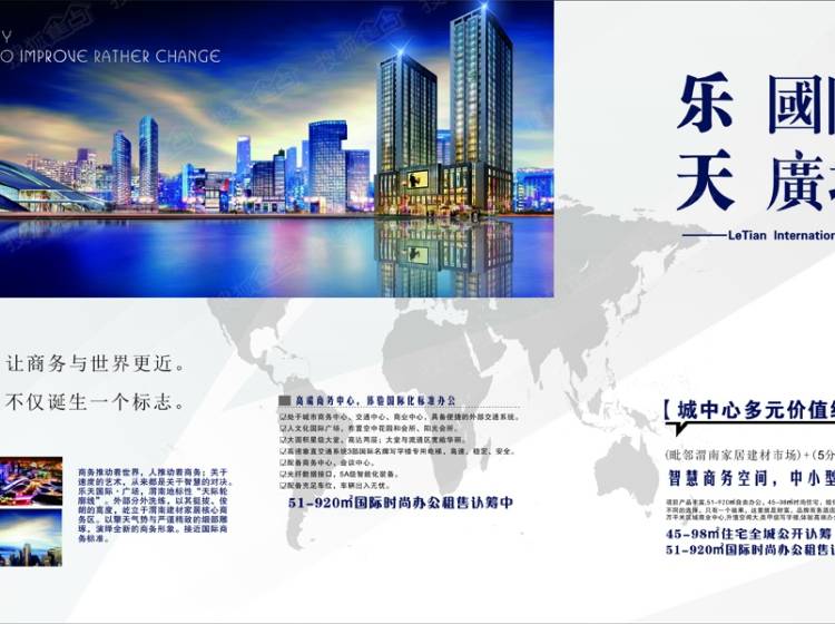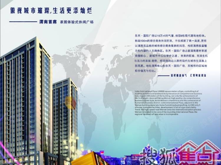 乐天国际广场项目是陕西润城置业有限公司暨润城·公园印象项目后在渭南市的的又一重磅作品,整个项目总建筑面积六万多平方米,项目位于乐天大街与前进路黄金十字交汇处,是渭南民间资本通过多年市场化运营发展起来少有成熟完善,并为渭南市民所认可的建材家居商业区(老乐天建材城),为广大消费者所熟知,具有浓郁的商业氛围和庞大的人流量,且周边居住配套完善,居住人群众多,宜商宜居宜投资地段,具有广阔的物业发展升值空间。