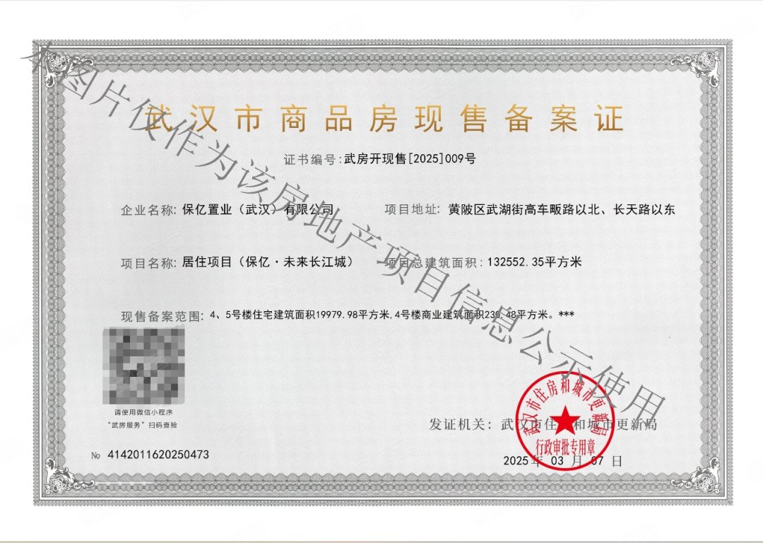 - 武房开现售[2025]009号 详情发证时间 2025-03-07绑定楼栋4#、5#证件照片