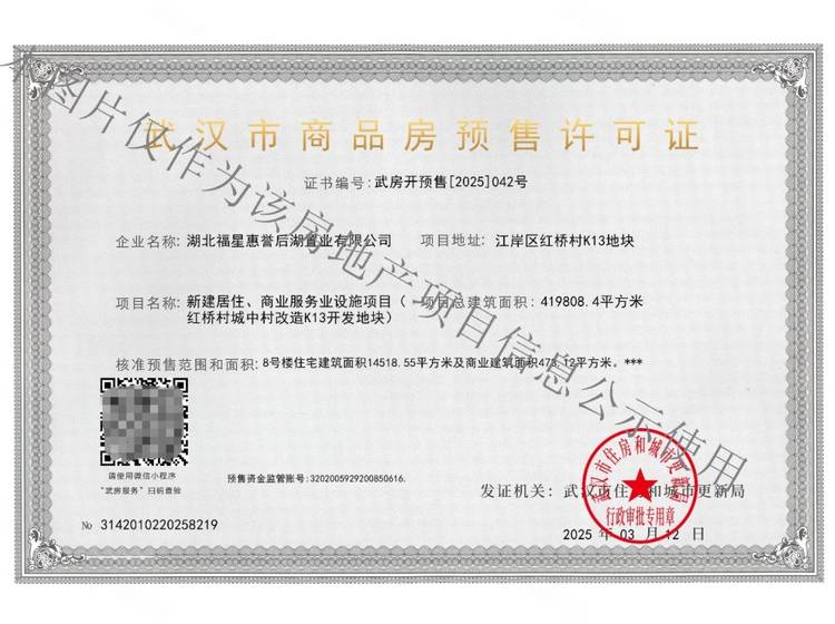 - 武房开预售[2025]042号 详情发证时间 2025-03-12绑定楼栋8#证件照片
