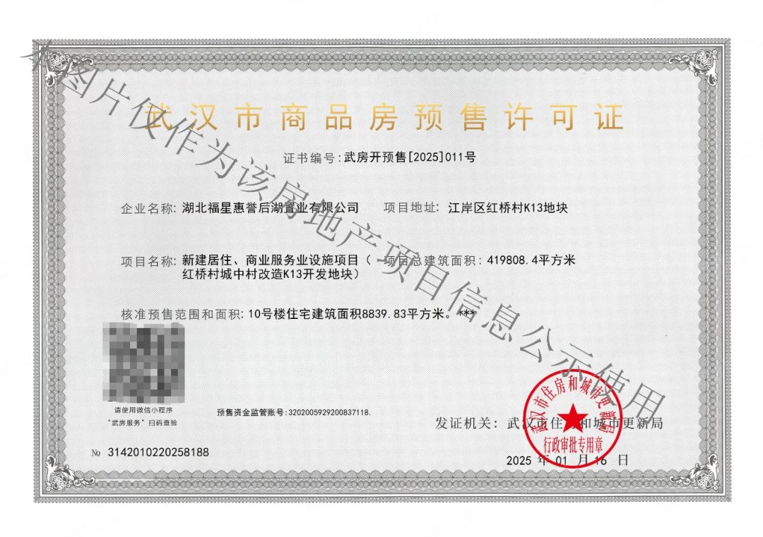 - 武房开预售[2025]011号 详情发证时间 2025-01-16绑定楼栋10#证件照片