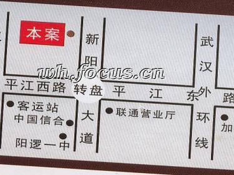 武汉客运港乘2106至阳逻客运港转车至阳逻电信大楼向前300米处;市内有看房车。