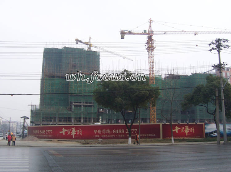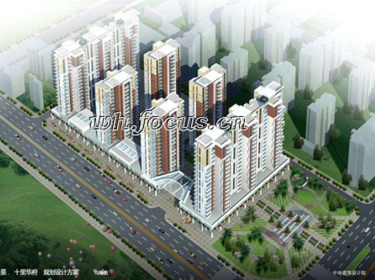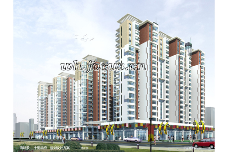 “十里华府”建筑面积为52199平方米,主要是6栋18层及19层小高层住宅和二层商铺组成。项目地处汉阳大道与赫山路交汇处,汉阳王家湾商圈的中心位置,拥有汉阳大道上排名前列个社区退让的城市广场,未来5号地铁站就在家门口,优势地段成就汉阳中心的特别门户生活坐标。项目的“九宫格局”规划,一条中轴线,三大宫格,六个组团,整个社区规划工笔有力,文化有度,多个社区园林与建筑布局相结合,营造了整个社区的文化礼仪。“礼仪中华园林”的造园理念,形成了汉阳少有的文化社区形象。