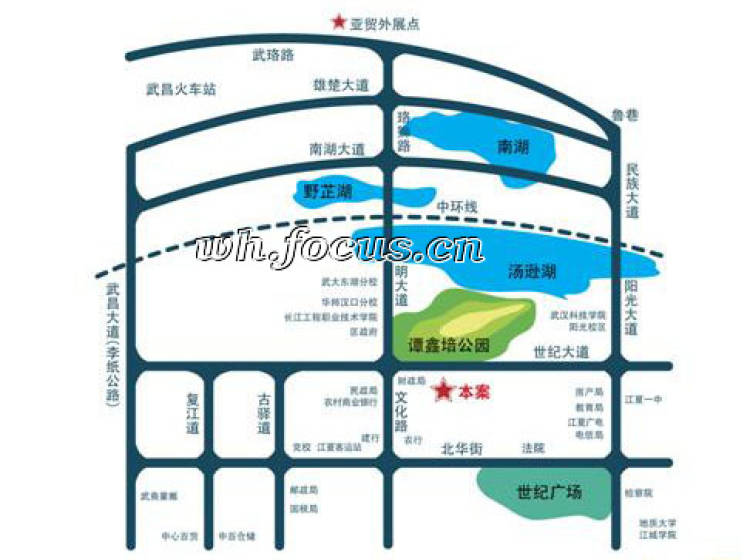 公交:905至汉口武胜路 901 903 907至武昌火车站 908走光明大道15分钟到街道口(暂未开通)