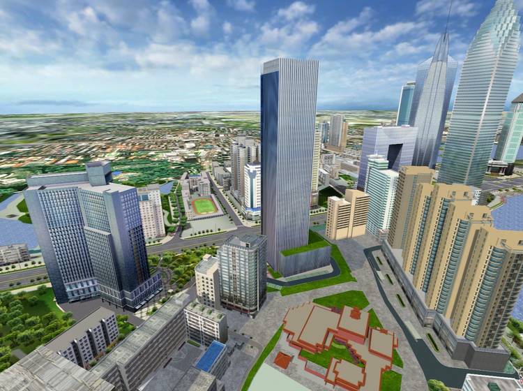 汉江国际大厦位于武汉市新华路中段,东邻小南湖公园,南靠江汉北路,西临新华路,北为登月大厦写字楼,处于江汉北路、台北一路以及小南湖围合。开发项目暂命名为“汉江国际大厦”,整组建筑由三种主题形式组成,办公主体放置于地块南侧,并退让出30米小南湖景观视线通廊作为办公主体的南向广场,开放小南湖景观的同时也提高了办公写字楼品质;西侧平均退让新华路18米开放空间满足城市视线疏朗要求;裙房布置商业卖场,单独设置出入口。