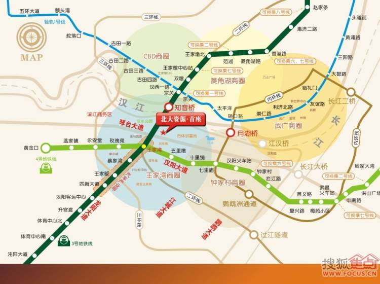 其他:北大资源·首座位于武汉中心城区快速路——二环线上江汉二桥(知音桥)下桥处,车行十分钟,串联武广商圈,江汉路商圈,CBD商圈,汉口火车站等武汉地表。