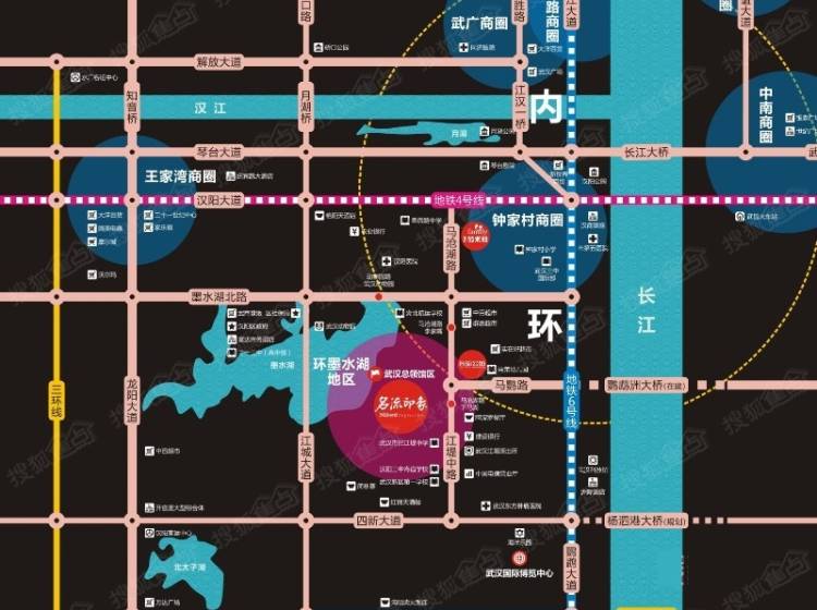 项目位于江堤中路与墨水湖南路交汇处,紧邻武汉市二环线,为城市核心居住区,交通十分便利。从项目出发,3公里即可到达钟家村商圈及在建的五里墩商圈,5公里可到达王家湾商圈。鹦鹉洲长江大桥和江汉六桥已通车。
