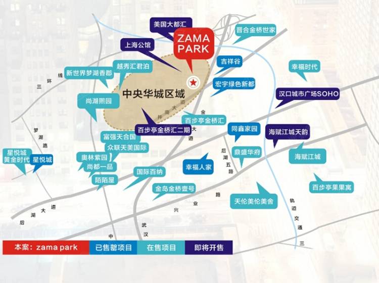 ZAMA PARK位于武汉大道,市民之家旁,属于二、三环之间的城市经济圈,位于后湖中央政务区核心位置。在政府的促进下,后湖交通便捷、水陆空轨道桥梁交通工具一应俱全,商业新纪元开启指日可待。项目周边配套齐全,市民之家、长江传媒大厦等新兴商务配套,运动设施、人文景观丰富配套资源近在咫尺,坐拥武汉大道中心、双环线、双地铁、城际铁路、天河机场以及“三横五纵”的规划,贯通武汉三镇,地铁三、六号线,缩短各区之间距离。