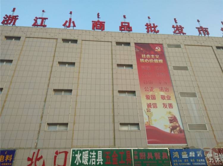 浙江小商品批发市场有限公司,位于工农大街中段,该工程始建于2001年,占地30余亩,建筑面积12000平方米,分成商铺712间。市场经过近10年的发展壮大,现有经营户350家,商品批发逐年增加。 主营业务:现由小百货区、服装区、皮鞋区、五金日杂区、电器区、小食品区等六大区组成。 浙江小商品批发市场二期工程项目,总建筑面积153451平方米。 A区建筑面积95077平方米,其中商业用房(地上)建筑面积61326平方米,办公室6100平方米,商业用房(地下)建筑面积13570平方米,停车库建筑面积14081平方米。