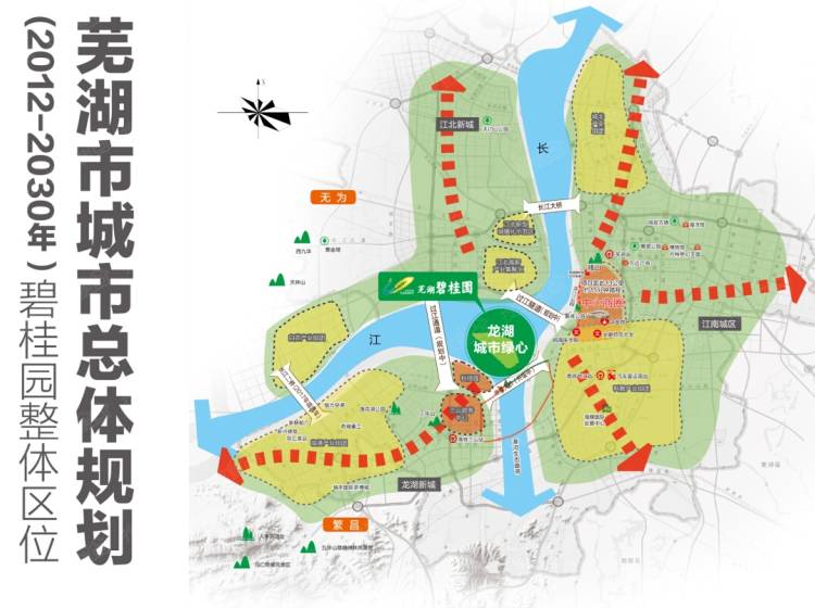 项目所在地拥有芜湖市区最优质的水景资源——两个均过万亩的内、外龙窝湖和芜湖市区内近乎最宽阔的长江美景,紧邻600亩湿地公园。芜湖碧桂园总体规划坚持“以人为本”的规划原则,注重生态设计,合理地利用了区域的水景资源,创造出多层次的生态型园林绿化体系,同时在设计中还引入高尔夫绿化设计理念,结合了优质的水自然元素,让建筑与层次丰富的绿化生态体系优质结合。