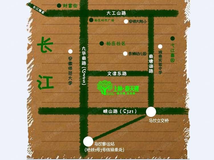 上林.春天里北临纬七路,西依城市主干道九华山路,东临芜石路——整体位于市区宜居的高校园区板块中心位置。项目周边有奥林匹克公园、文化公园、滨江公园、十二中、萃文中学、师大附小、欧尚超市、沃尔玛超市、苏果超市、新时代商业街、中央城财富街等高端城市配套环绕,交通网线畅达、生态环境优越。