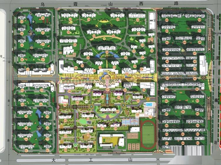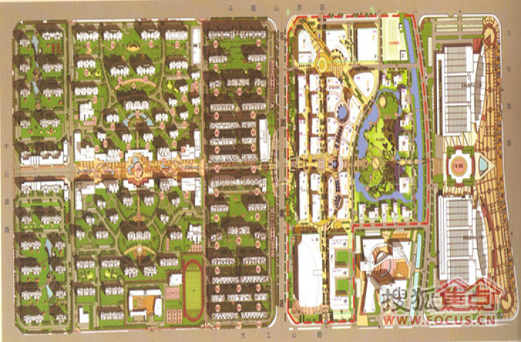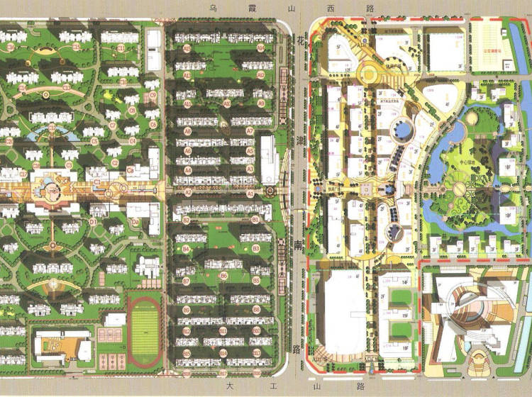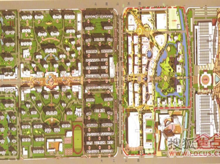 ·商业:20余万平米商业设施:1号地块商业街、大型中心商场、超市;2号地块社区商业街、社区大型菜市场等。