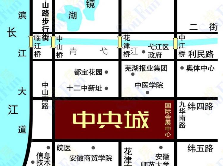 中央城位于花津南路39号,建筑面积130万平米,占地面积87万平米,规划建设总户数8000户。中央城配套齐全,人文气息浓厚,生活设施完善,毗邻安师大、皖南医学院、安徽商贸职业技术学院等高校,还有社区双语幼儿园、九年一贯制学校、芜湖市十二中等,附近还有多家医院、银行,距欧尚等大型超市较近,另外还有正在建设中的中央城财富街隔街相望,购物方便。乘坐10路、16路、18路、24路、26路、44路、32路、36路、37路、109路即可到达“中央城”站,交通便利。