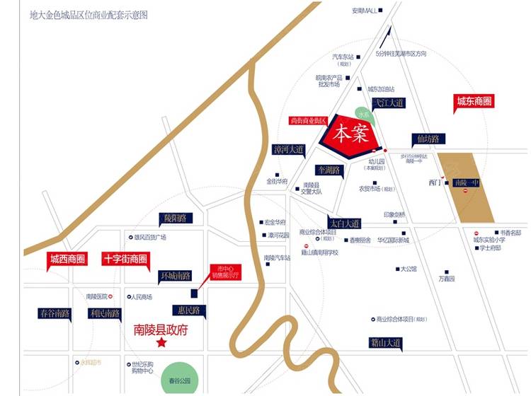 金色城品,位于南陵县新老城区交接处的核心区域,两条主干道之间,西接漳河大道、南邻仙坊路、东靠弋江大道,北邻规划中的陵阳公园。占地面积约123亩,建筑面积约22万方,其中住宅面积约16.4万方,商业约2.2万方。