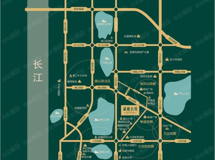 赭麓公馆被芜湖九华中路、文化路、赭山西路几条主干道路围合而成仪表厂地块,是芜湖人流量最密集的区域。四面环新老小区和各种商业,交通有火车站、汽车站,商业中心云集,毗邻镜湖区政府,人文气息浓厚,西面紧邻赭山公园.
