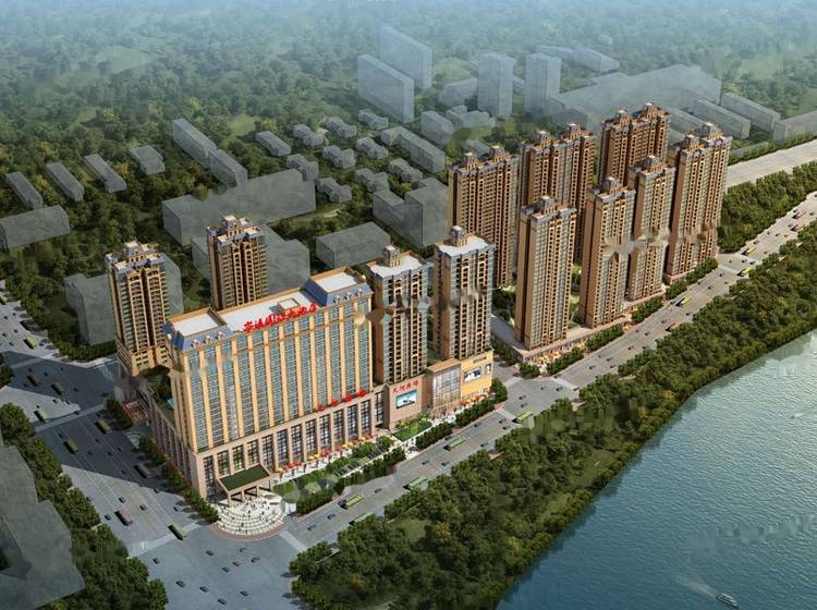 岑溪国际大酒店·天河广场由岑溪市国强商贸有限公司投资兴建,是一个集星级酒店、商务写字楼、高档住宅小区、精品百货、大型超市、大型影院等配套设施于一体的城市商业综合体。 天河广场位于岑溪市沿江三路与南北大道延长线交接处,依义昌江而建,南瞰青山,北看城。总规划用地面积约90亩,总建筑面积42.6万㎡,项目周边交通方便,毗邻大广场商圈、四大银行、金融机构是未来岑溪市的商业、娱乐、文化、政务发展中心。