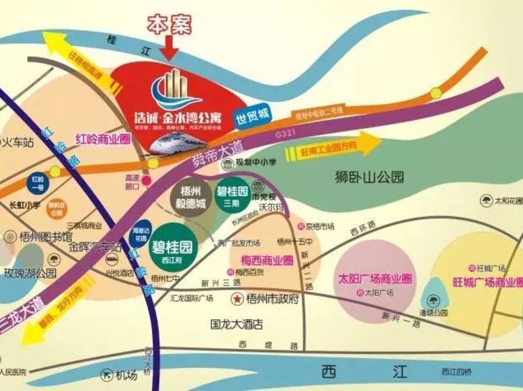 浩诚·金水湾公寓地处梧州高速入口和321国道交汇处,集交通捷运于一身。