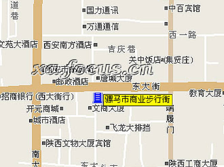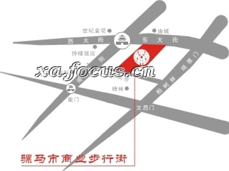 骡马市商业步行街位于东大街西段,与素有“天下排名前列楼”之美称的钟楼同处一条轴线,距钟楼仅200米。其北临东大街,南接东木头市,西傍骡马市街,东连南北柳巷。由于地处市中心繁华地段,且位于钟楼商圈核心位置,得天独厚,占尽地利。
