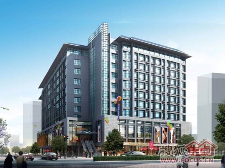 项目为仿唐式建筑风格,占地6400㎡,总建筑面积45385.03㎡,容积率5.82,建筑密度72.16%,绿化率30%。建筑东西长94.6米,南北宽45.5米。总高36米共11层,1-3层为商业,建筑面积:12501.57㎡。 4-11层为公寓,建筑面积:24764.48㎡。设商场出入口一个,位于项目东边。车库出、入口各一个,位于项目西边南北两侧,车库设于地下。