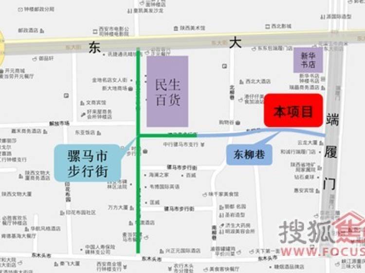 “端里门”项目位于东大街与端履门十字西南角,东大街是有着百年历史的商业老街,商业氛围浓厚。西邻商业步行街“骡马市”、民生百货、兴正元购物广场、开元商城、世纪金花等,北邻炭市街(改造后的炭市街将是集购物、餐饮、娱乐、休闲为一体的综合商业街区)、“西安五一饭店”,南邻“西安东方购物中心”、“西北大酒店”和“兴正元广场东门”, 东边距万达“万达 新天地”仅100米左右。