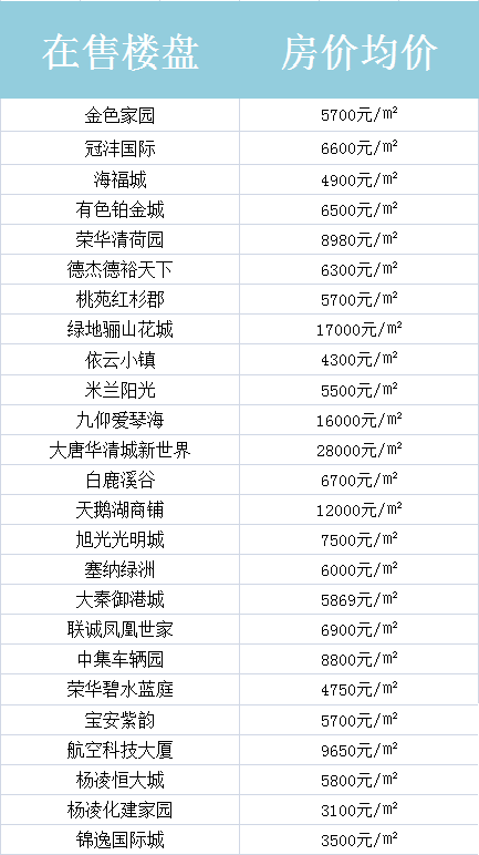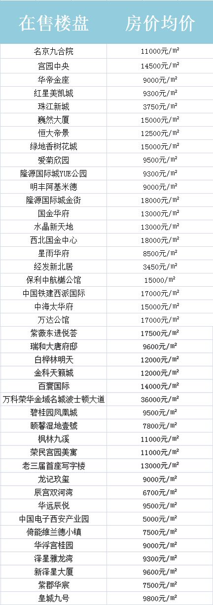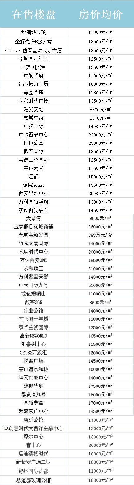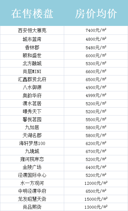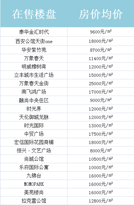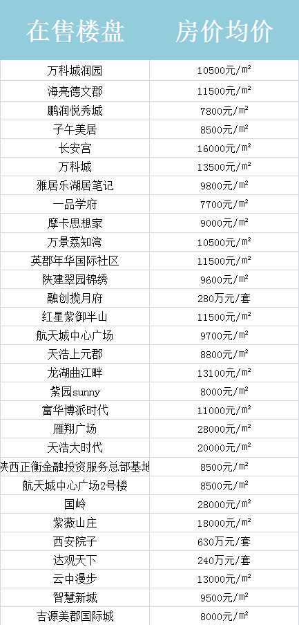 西安周边在售房价