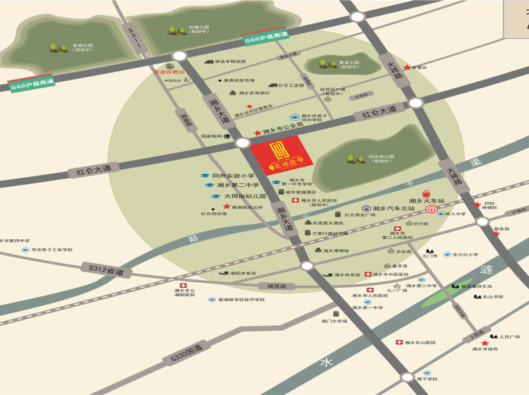 湘乡市湘乡大道与红仑大道交汇处东南角(一职中旁)