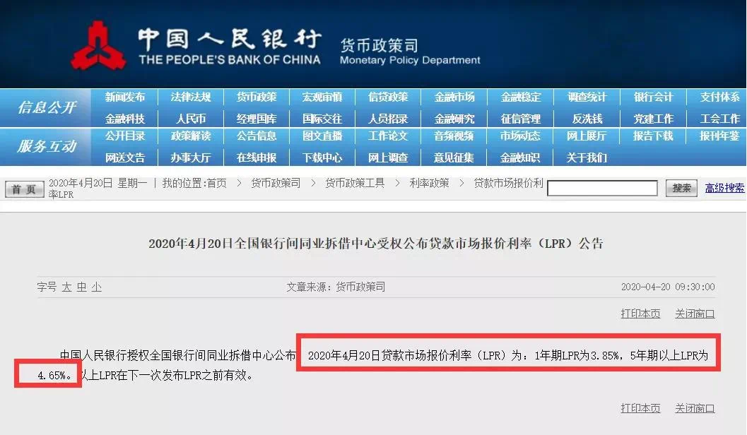 1年期LPR降息20个基点,从4.05%降低到3.85%
