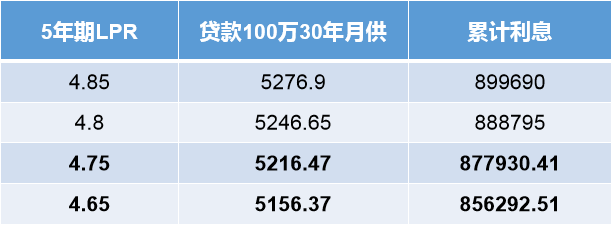 5年期LPR降息10个基点,从4.75%降低到4.65%