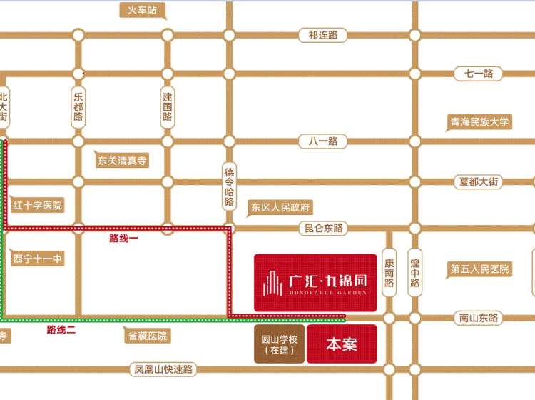 广汇九锦园位于城东区南绕城路与湟中路交界处。项目由青海广汇房地产开发有限公司开发,该公司在西宁开发的广汇合院,广汇家园等项目都收到了西宁市场的一致好评。其法式宫廷园林与独树一帜的ART-DECO建筑风格,成为该项目特有的价值卖点。九重台地园林,庭前流水绿荫花落,周边交通、商业、教育、医疗配套全都有,满足全家的家居生活需求。吃喝玩乐一条龙,必须一步到位。