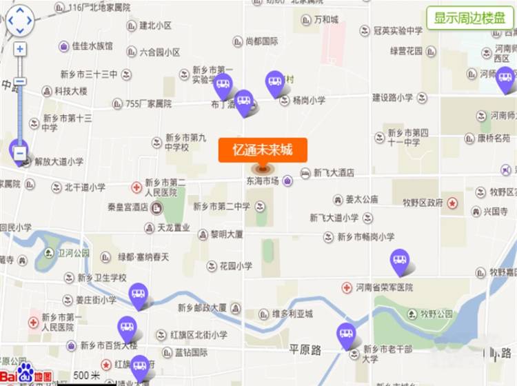 忆通未来城周边配套齐全: 银行:工商银行、中国银行、农业银行、建设银行、邮政储蓄银行、信用社 学校:新乡市二中、和平路二小、陵园小学、机电专科学校、 商场:二中市场、谊连大市场、粮油市场、东海市场、古龙市场 医院:新乡市公立医院、新乡市第二人民医院、 新乡市英雄广场、新乡市体育馆、民生证券、 其他:新飞大酒店、天然居烤鸭店、谭鱼头火锅、和合居、一尊黄牛、二十一世纪广场、牧野区税务局、水电五局、新飞电器集团、河南第一工具厂 忆通未来城,市政供暖,双气社区。诚邀世界级景观大师深度演绎35000平米私家生态园林,以超高绿化率倾力打造尊贵的现代人居殿堂。忆通未来城园区设置南北两大景观组团,构成完美的园林景观体系。并率先采用现代科技,设置园林雾凇系统,时刻品味生活优雅,奢享自然盛宴。