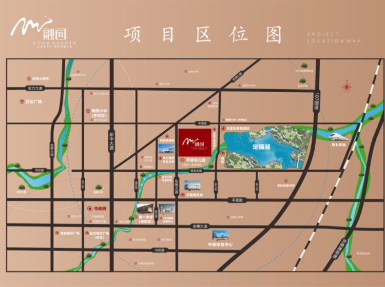 融园项目位于中原东路与东明大道交叉口的东南角,总占地37.7亩,总建筑面积11.4万㎡,绿化率约38%,容积率3.5,车位比例高达1:1,由6栋18F~30F小高层、高层住宅楼和6000㎡的商业街组成。处于新乡市东区定国湖“湖居生活圈”核心位置,项目周边交通网四通八达,医疗、商业配套完善,周边中小学、大学林立,满足教育需求,更是新乡市发展的主力方向,市政配套逐步完善中,当下即后去发展潜力巨大;
