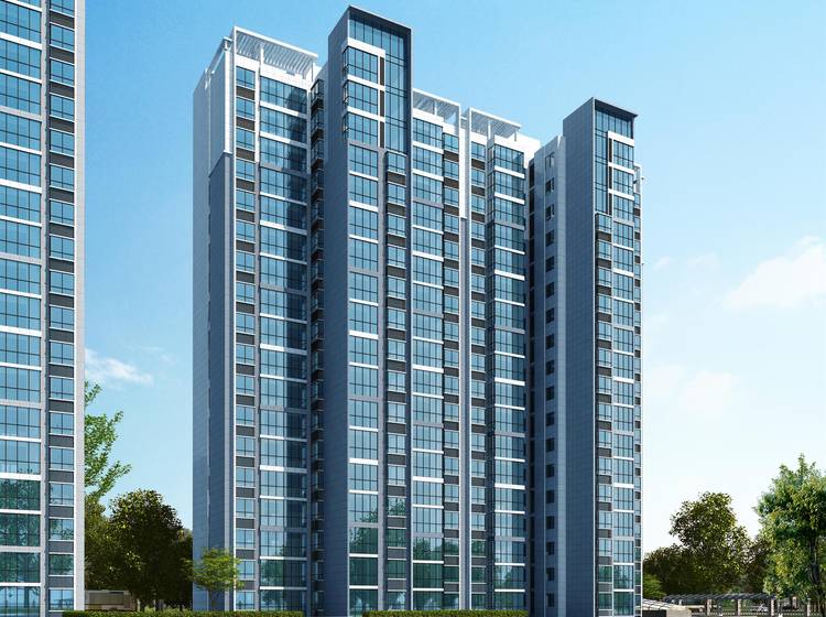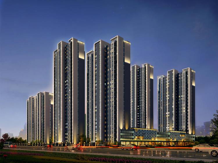 项目整体建筑外立面以现代简约风格为蓝本,蓝灰色为主色调、穿插白色线条,极富未来感,建筑彰显现代特征,同时灰白色搭配,经久耐用,愈久弥新,又暗合中国水墨山水画的意境,让建筑美感与定国湖水域景观交相辉映。