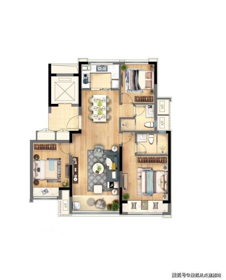 102平3室2厅1厨1卫