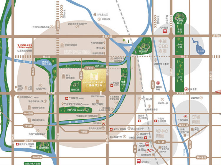 万盛·许都之心,地处天宝路中轴核心,是区域内少有40万方沉浸式级城市综合体,涵盖潮流购物中心、海派风情商业街区、公园人文美宅、星级酒店、CBD商务中心、LOFT双钥匙公寓于一体,建成后将成为许昌市地标性大型休闲体验式城市生活广场,辐射整个许昌。