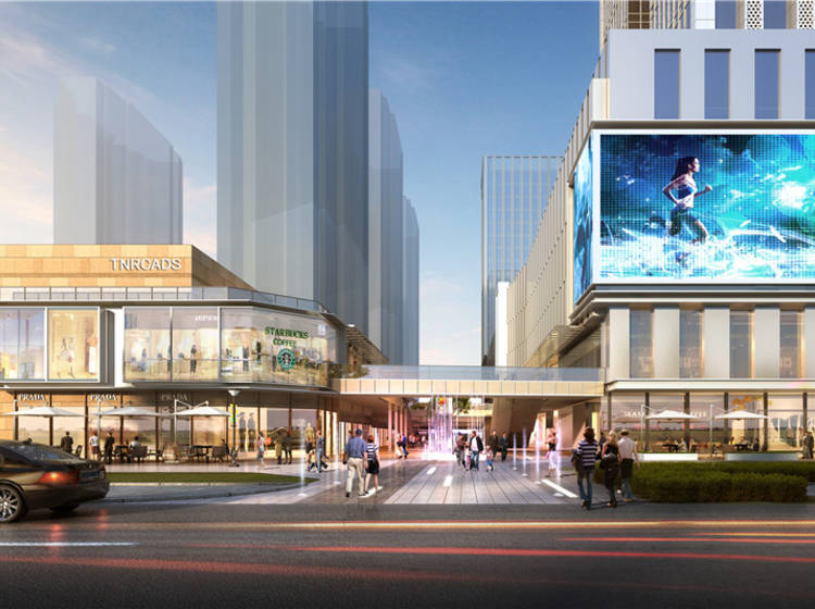 天宝路作为东西中轴,延安路为南北轴线,沿路驾驶至路口即可