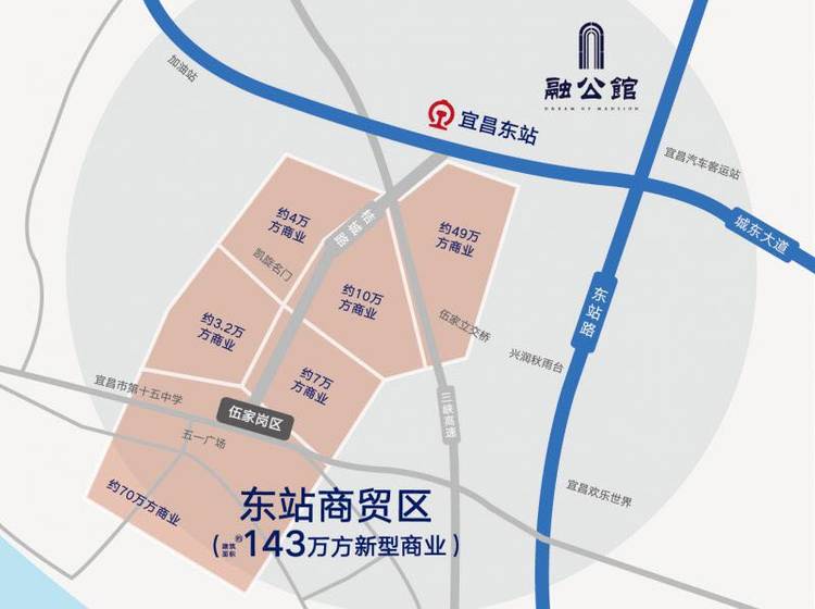 综合商圈:三峡物流园、哇哈哈广场、五一广场商圈、国贸新天地、盛景商城、万达广场