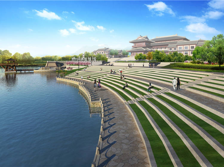 项目整体规划为一轴、一环、八区。一轴是指长约7.5公里以、关公文化朝拜区和财神大道的主题规划轴;一环是指围绕300亩青龙偃月湖的生态环;八大功能区包括关公文化朝拜区、荆楚风情街区、关帝度假区、水岸观光体验区、欢乐谷区、温泉度假区、财神商业街区和革命历史教育区。