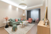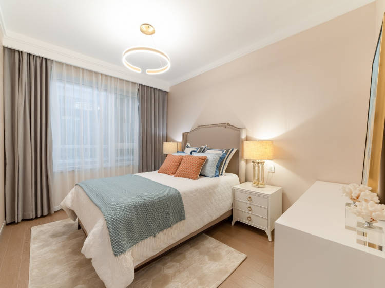 佰和二十载致敬衡山路,项目位于衡山路南首衡悦广场西侧,项目总占地约4.2万方,总建筑面积12.9万方,根据地势特点,五栋楼分别以一字型排开,干净利落的水平直条相映衬,立面朝向的细节设计充分考虑了节能、光照、视野等因素。楼宇自西向东分别是31,30,30,28,33层,外立面采用了现代简欧风格,简洁大气。整体色调是米黄色跟深灰色相结合。一到三层干挂石材,三层以上真石漆切块。