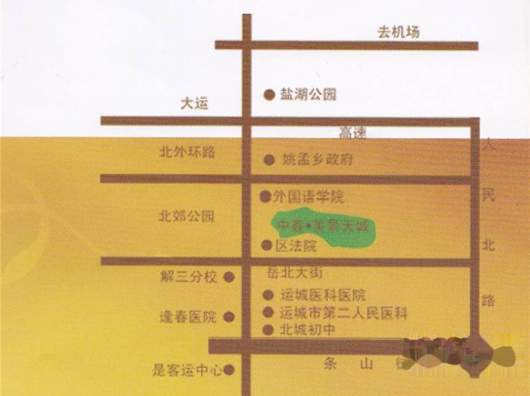 学校:外国语学校,解放路师范学校 公园:北城公园 政府机构:盐湖区法院, 其他:科技产业园,中心汽车站,五星级皇家国际会所,新天地商业步行街 羽毛球场,篮球场, 上万平米新天地商业步行街,五星级皇家国际会所。